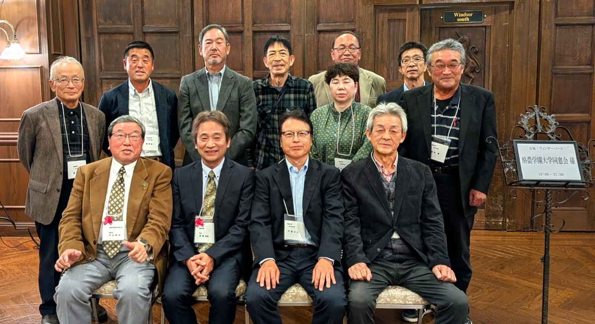 その後、同会場にて中出同窓会副会長による乾杯の挨拶で懇親会が行われた。今年も同窓生が出席し和やかな歓談が続き、「酪農讃歌」を全員で合唱、記念撮影を行った。最後に荒嶋同窓会中国地区会長の閉会挨拶で終了した。(文責 事務局 山根法明)