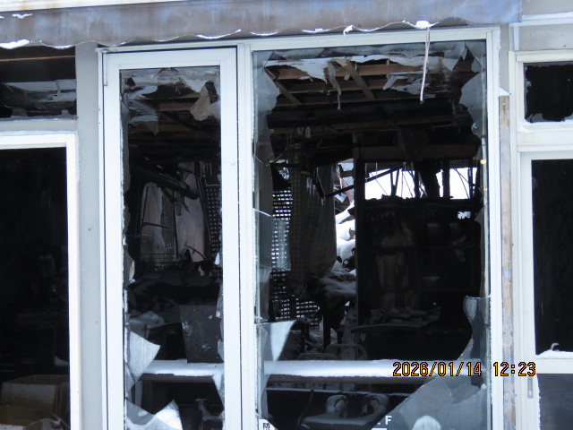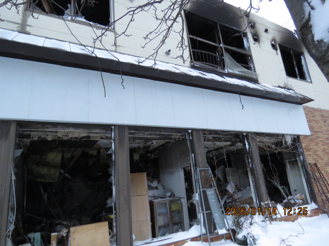 1月7日午後11時30分ごろ、江別市大麻東町の「大麻銀座商店街」のバイク店から火が出ました。