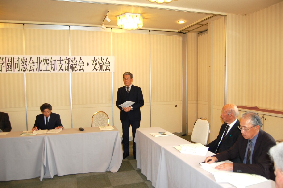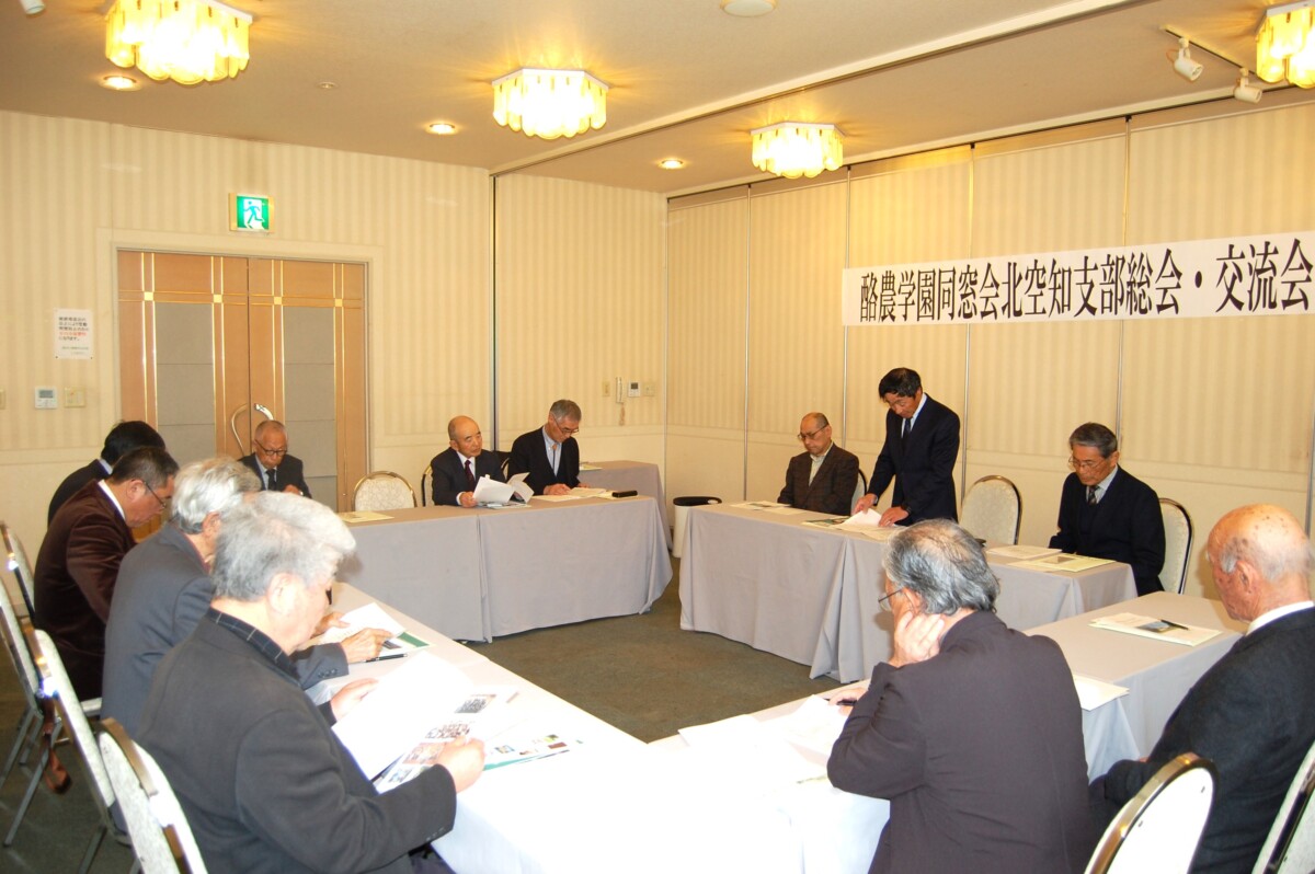 令和8年度の活動計画及び収支予算についても承認され、ホームカミングデーへの参加も計画されている。総会終了後、別室で交流会が開催された。山本会長の開催挨拶に続き、野同窓会会長から酪農学園の概況について詳細に報告した。北本顧問の乾杯で始まり、その後参加者全員から近況報告をいただき、和やかな交流会となった。最後は後藤顧問の一本締めでお開きとなった。低気圧接近で道北地方は雪となり、深川市も雪模様であった。